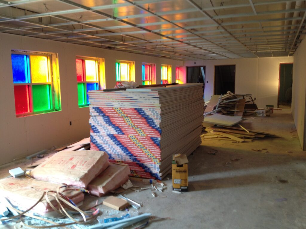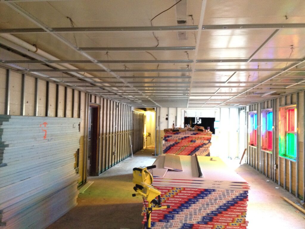 All mechanical, electrical, and metal framing of the basement were also replaced. Drywall and drop ceilings were replaced and painted. 4,000 sqft of VCT tile and two thousand sqft of ceramic tile was installed.